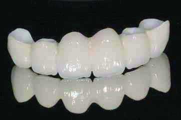 2、密度和强度高:独一无二的抗破裂性及破裂后强韧的固化性能,可制作6个单位以上的烤瓷桥,解决了所有全瓷系统不能做长桥的问题。
